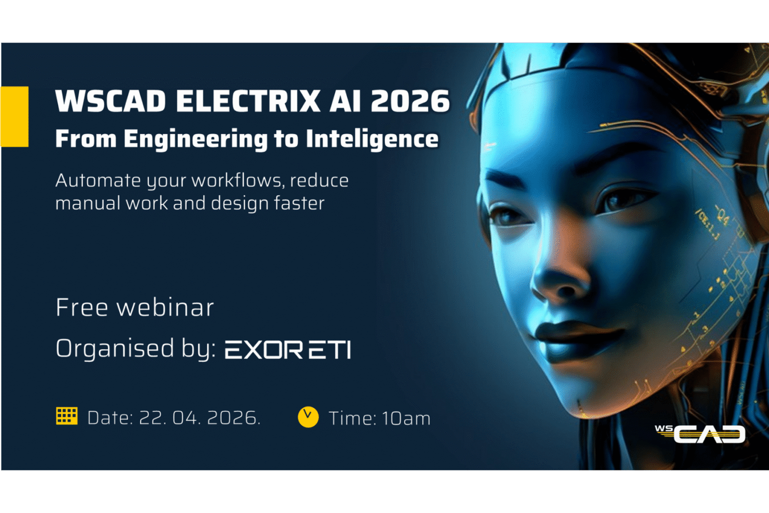 Kompanija EXOR ETI najavila je besplatan vebinar pod nazivom „WSCAD ELECTRIX AI 2026: From Engineering to Intelligence ”, koji će biti održan 22. aprila 2026. godine u 10 časova putem Zoom platforme, na engleskom jeziku.