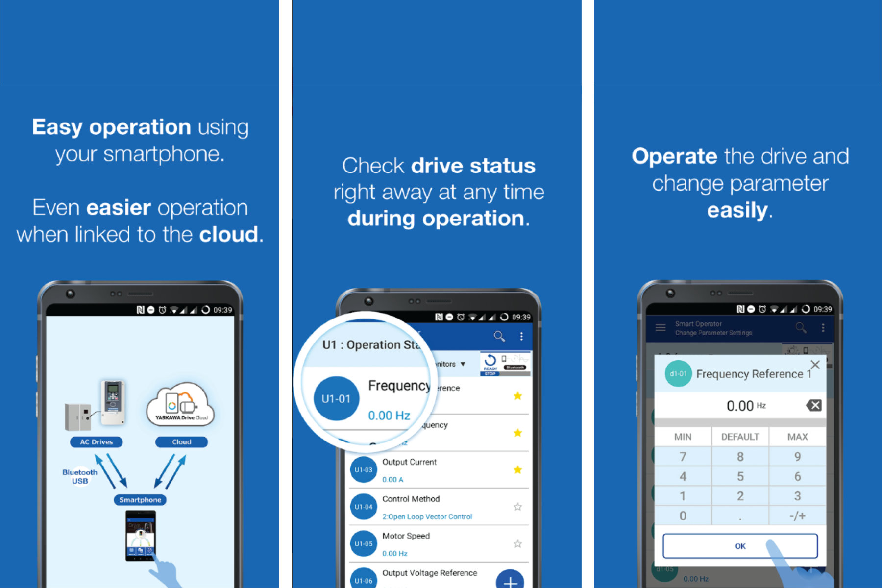Nema potrebe više da nosite laptop ili štampana uputstva. Dok DriveWizard Mobilna aplikacija pojednostvljuje podešavanja, monitoring i dijagnozu GA700 pogona, Manual Reader omogućava pristup uputstvima. DriveWizard Mobilna aplikacija: podešavanje pogona, online monitoring i dijagnoza, samopodešavanje motora, konekcija Bluetooth-om ili USB-om, upotrebljiv i u off line režimu bez internet konekcije. Drive Manuals aplikacija: pristup novim GA700 uputstvima, download za offline upotrebu.