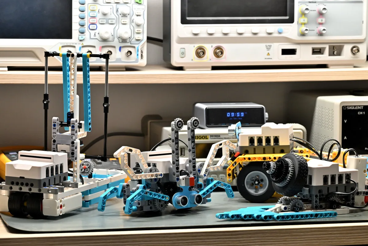Nezha Pro Ocean nema ni mušemu, ni posebne elemente, a ima najmanji broj motora – samo dva. Probali smo da od jednog Ocean kompleta napravimo više zadatih kreacija, ali nam nije pošlo za rukom – uvek nam je nedostajao veći broj delova. Na slici ispod vide se četiri od šesnaest modela ovog novog kita. Primetićete sigurno da je vozilo u pozadini uljez, budući da je izgrađeno od elemenata Nezha Pro Space Science kita i Nezha Inventors kita. Odmah da napomenemo, veoma je teško bez modifikacija uraditi modele jednog kita sa elementima drugog. Budući da smo za potrebe recenzija od Elecfreaks-a prvo bili dobili stari Nezha Inventor’s Kit – koji ima stari Breakout Board i motore, žute elemente i odlične PlanetX senzore, te je potpuno kompatibilan sa novim kitovima, ali i nove Space Science, Sports, Ocean, kao i najnoviji Power AI (koji ćemo tek predstaviti), nije nam bio problem da sagradimo veći broj modela u jednom trenutku. Sa jednim ili dva kita, ovo svakako ne bi bilo moguće.