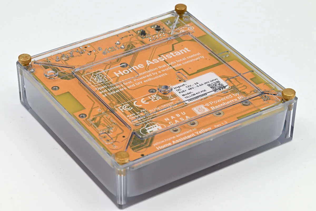 Home Assistant Yellow je po onome što piše na kutiji hab u pametnoj kući namenjen za entuzijaste, za sve one kojima nije problem da samostalno isražuju hardver i softver kako bi podesili, pa i pokrenuli uređaj – ovaj put Home Assistant OS na ovom kitu. Dobili smo ga od proizvođača za potrebe ove recenzije u varijanti sa PoE modulom. Od nastanka, pa do ovih njegovih poslednjih dana kao modela u ponudi, izrađivan je u tri verzije. Prvobitno je to bio komplet koji je pored Nabu Casa kita-a sadržao i Raspberry Pi Compute Module 4 i napajanje, ali nije imao PoE već samo obični 1 Gb Ethernet port. Na njemu je već bio preinstaliran Home Assistant OS i nije bilo nikakvih problema da se pokrene i kasnije ažurira. Ograničen pristup Raspberry Pi Compute Module 4 primorao je Nabu Casa, ne bi li održao proizvod u ponudi, da ga isporučuje u dve nove verzije: sa napajanjem i bez napajanja sa PoE modulom. U oba slučaja kit nije imao Compute Module u sebi. To je značilo da nije ni mogao doći sa instaliranim OS-om, a posredno je to kupcima drastično zakomplikovalo inicijalnu instalaciju HAOS-a. Naime, videćemo kasnije u recenziji, zašto je za automatsku instalaciju neophodno da je na modulu već instaliran HAOS.