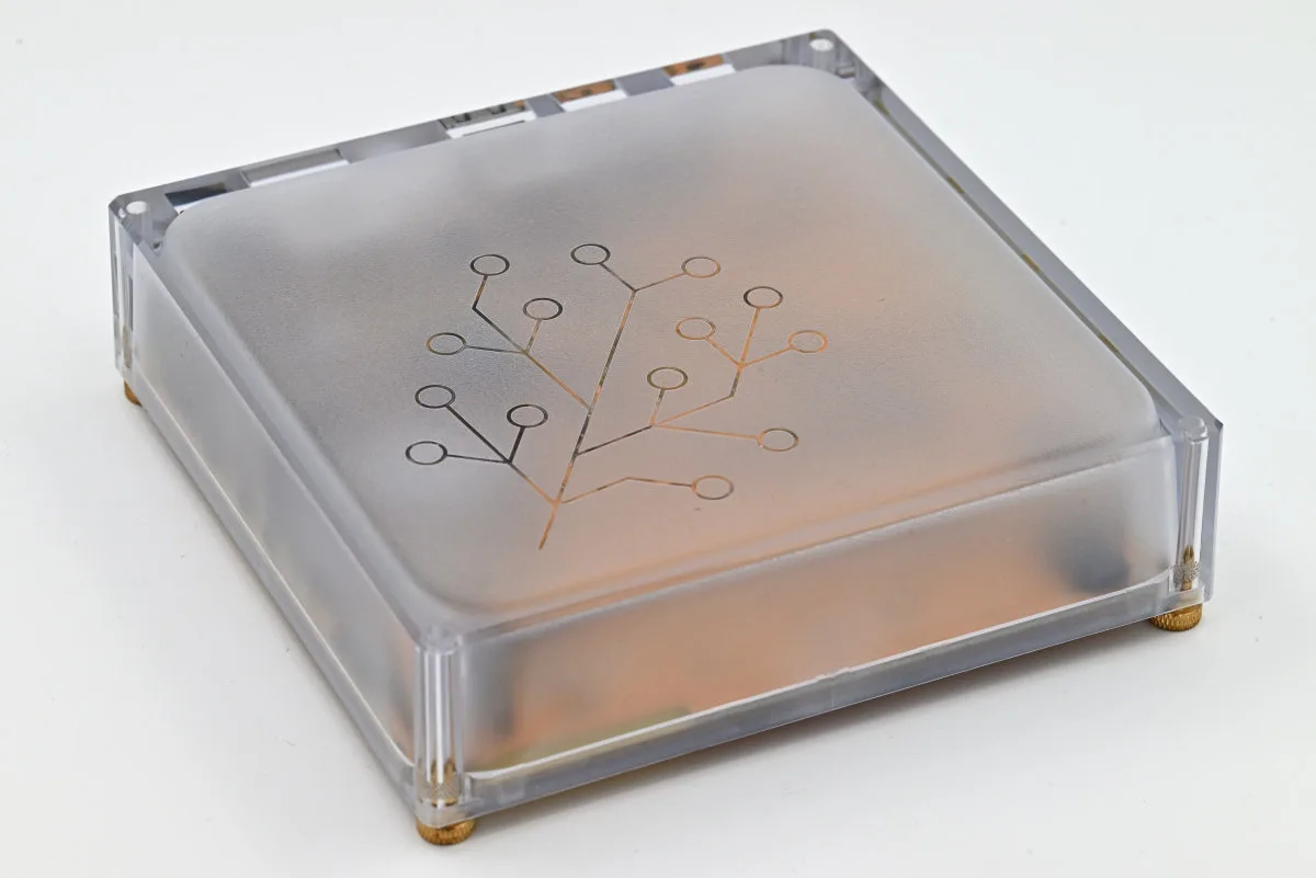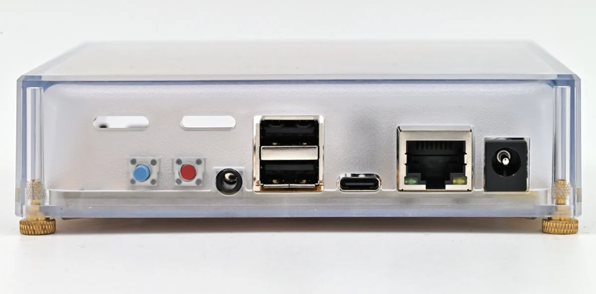 Udaljimo li se malo vidimo da sa donje strane, kao ni sa gornje, kućište nema nikakvih otvora, pa je odvođenje toplote generalno problem koji se može rešiti samo SoC-om koji se malo zagreva pri radu. Ovde se opet vraćamo na mogućnost korišćenja Compute Module 5, koji se realno, zbog performativnih ARM Cortex-A76 jezgara na 2.4 GHz jednostavno greje više nego njegov prethodnik Compute Module 4 sa svojim ARM Cortex-A72 jezgrima na 1.8 GHz, bez obzira na novi dizajn čipa.