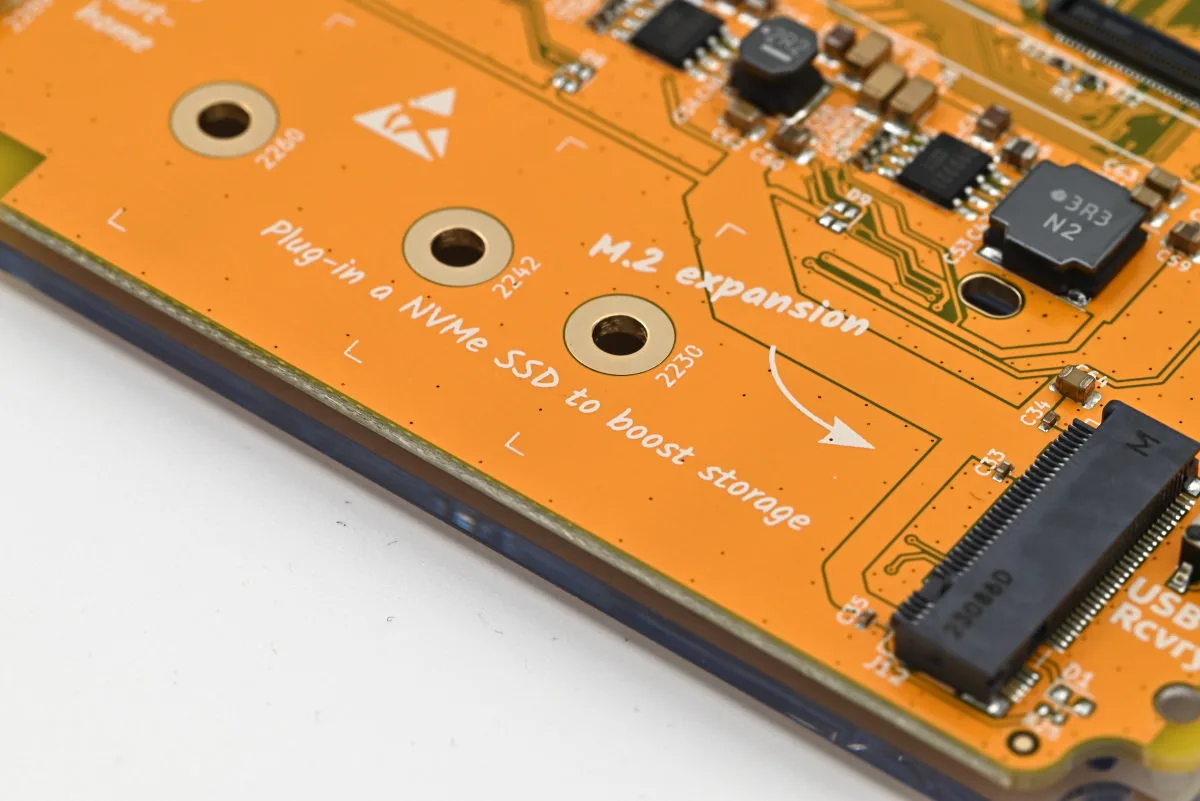M.2 konektor omogućio je ugradnju NVMe SSD-a velikog kapaciteta pogodnog za lokalno skladištenje podataka, najčešće multimedijalnog sadržaja. Na Home Assistant Green-u to nije moguće, ali postoje (kao i ovde) opcije za povezivanje USB eksternog diska preko sporog USB-A 2.0 porta ili povezivanje sa skladištem podataka na oblaku preko interneta.