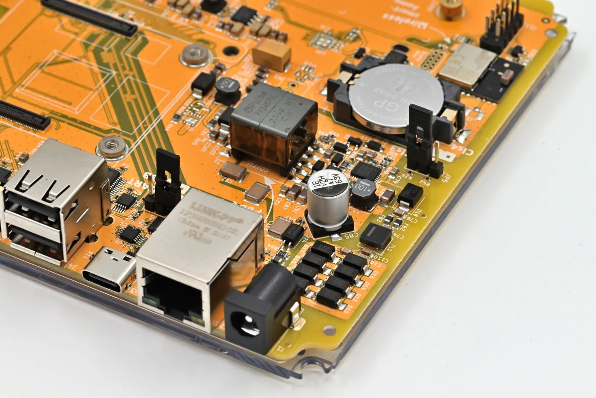 USB-C koji je sledeći konektor, služi kao port za flešovanje OS-a na eMMC ili NVMe SSD. Da bi se sa njegovog ulaza podaci slali ka jednom od njih potrebno je džamper na pčloči koji se vidi na fotografiji iza porta prebaciti sa položaja UART na položaj USB.