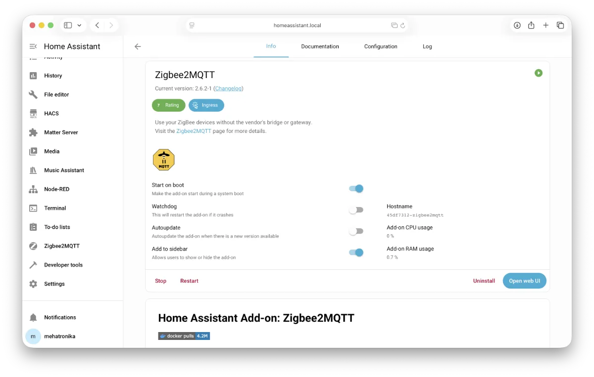 Svi add-on-ovi, zvanične i HACS integracije su potpuno funkcionalne i ažurne. Nećete se ni u jednom trenutku susresti sa neobjašnjivim nekompatibilnostima ili nefunkcionalnostima. Fokus Home Assistant Yellow modela svakako nam je bio na mogućnosti povezivanja Zigbee i Matter over Thread protokolima. Nažalost, kao što smo rekli sa ugrađenim modulom moguće je koristiti samo jedan od ta dva protokola, ali je moguće dokupi dodatni Zigbee modul – Home Assistant Connect ZBT-1 (kao i Home Assistant Connect ZWA-2 modul za Z-Wave) i imati oba protokola konkurentno.