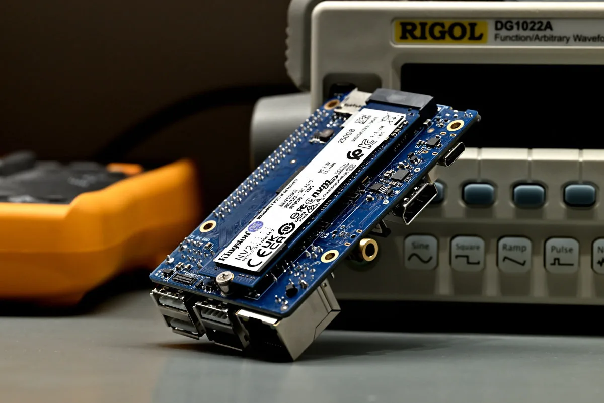 Brzine prenosa podataka sa SD kartice koje smo mi izmerili su 69,1 MB/s, dok je SSD postigao 657,5 MB/s, što je gotovo identično kao i USB-A 3.0 na koji smo „nakačili“ Kingston DataTraveler MAX 512 GB. Sistem je moguće pokrenuti ili sa SD kartice/eMMC modula ili sa kombinacije ugrađenog SPI Flash-a na ploči i SSD PCIe diska. Postupak je detaljno objašnjen u uputstvu.