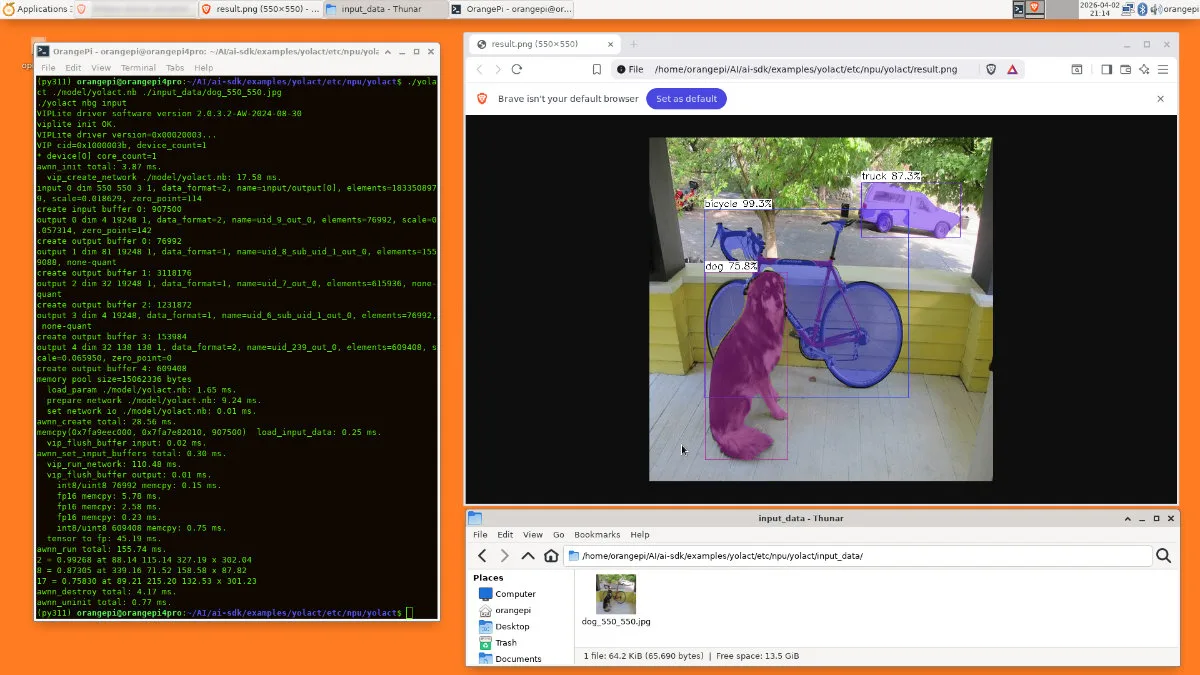 Orange Pi 4 Pro je korektna Allwinner A733 SBC platforma koja omogućava rad sa CPU i NPU-om u Linux okruženju – i desktop i kao server. Nažalost podrška drajverima za odličan Imagination BXM-4-64 GPU, kao ni za ugrađen XuanTie E902 RISC-V mikrokontroler ne postoji. Ako vam je AI na pameti, uz dve kamere i dva 4K video izlaza ovaj SBC će raditi posao. Naravno pitanje softvera je uvek otvoreno kod ovakvih računara, gde nemamo mogućnost da koristimo originalni imidž OS-a, već smo upućeni na prilagođenu verziju koju daje proizvođač ili na mogućnost da sami iskompajliramo imidž OS-a na osnovu Linux Source koda koji se može preuzeti sa Orange Pi GitHub-a. Ne zaboravite da će vam za to trebati x86 računar sa Ubuntu 22.04 na njemu.