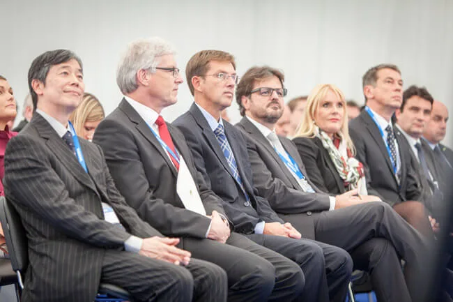 Visoke goste je pozdravila takođe njogova ekselencija Keiji Fukuda, japanski ambasador u Sloveniji, Manfred Stern, predsednik i izvršni direktor Yaskawa Europe GmbH i istovremeno potpredsednik Yaskawa Robotics Europe.