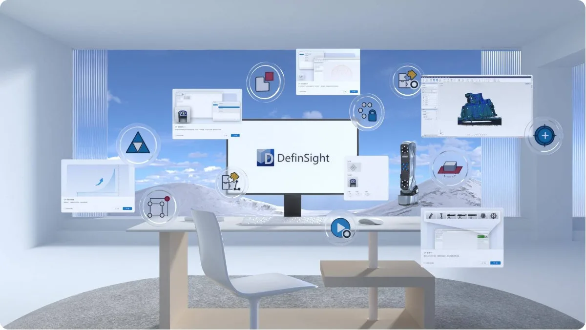 SIMSCAN-E radi sa potpuno novom softverskom platformom DefinSight, koja se oslanja na sopstvene algoritme i za analizu dobijenih podataka čime se ubrzava 3D skeniranje, ali i za kreiranje 3D mreže objekta u realnom vremenu. Skenirani podaci se prvo prebacuju u CAD model, a nakon toga kolorno mapiraju. Posebna pažnja je posvećena novom pametnom vodiču i njegovoj optimizovanoj kontroli magičnim dugmetom kako bi se i novim korisnicima olakšalo podešavanje parametara i intuitivniji rad.