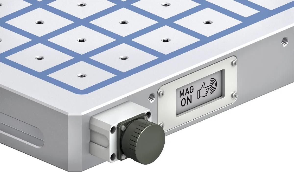 Kompanija SCHUNK je svoje proverene magnetne stege MAGNOS MFRS opremila novim ePaper displejem statusa "MAg ON", koji jasno pokazuje stanje stezanja. | photo: Schunk
