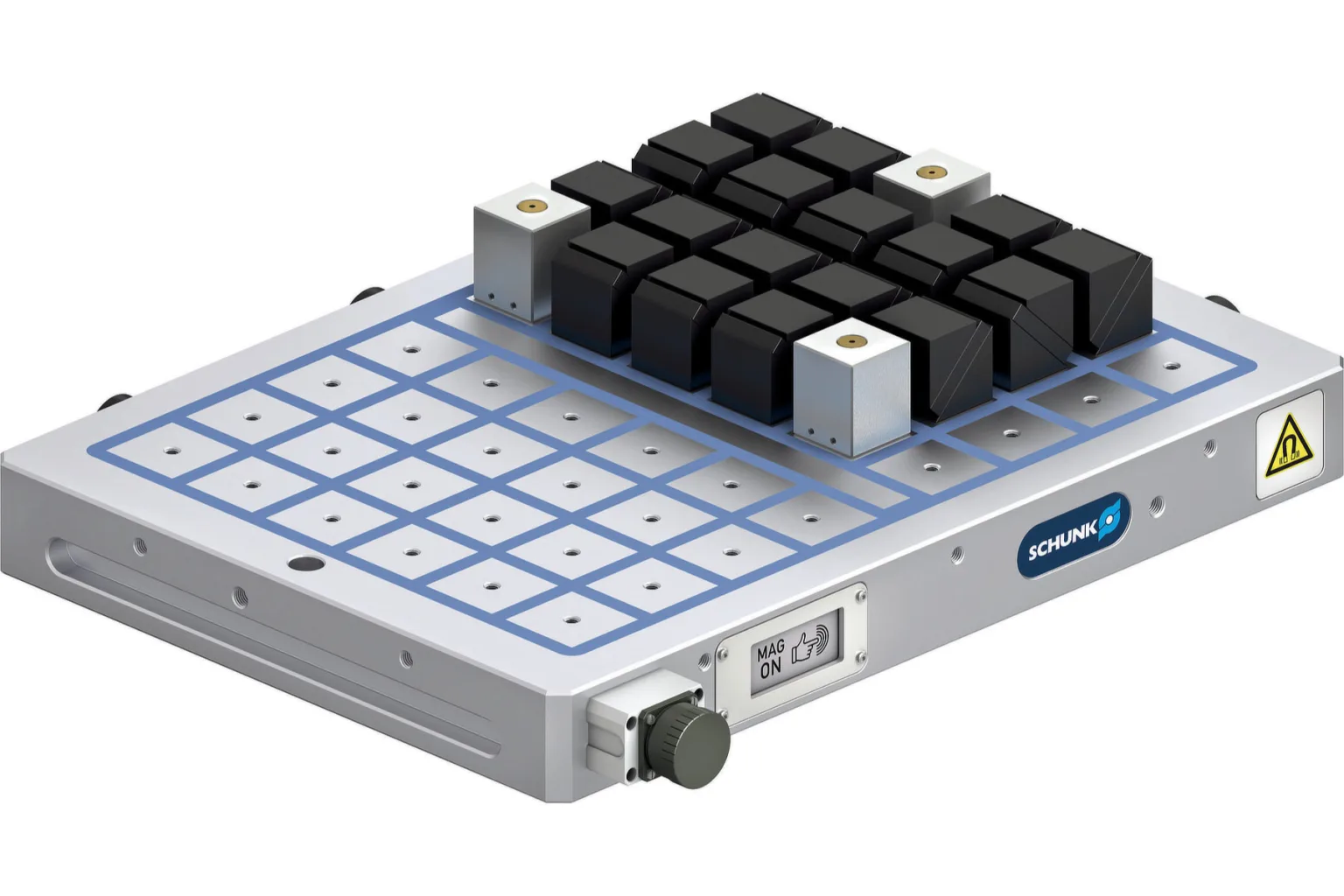 Kompanija SCHUNK je revizijom svojih magnetnih stega MAGNOS za petostranu mašinsku obradu bez deformacija obezbedila dodatnu pouzdanost procesa i pojednostavila upotrebu. Novi displej statusa ePaper „MAG ON“ pokazuje operateru mašine da li su magnetne stege aktivirane ili nisu. U kompbinaciji s namenski razvijenom aplikacijom MAGNOS, korisnici mogu da simuliraju slučajeve stezanja pre stvarne obrade.