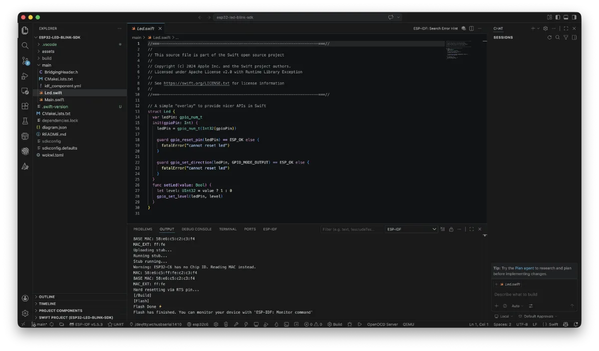Postoje i alternativni pristupi, poput Swift programskog jezika – recimo. Potrebno je da instalirate Embedded Swift, preporučujemo da probate i instalirate i uv – Phyton paket i menadžer projekata, napisan u Rustu. Preuzmite onda sa Swiftlang-a primere za ESP32-C6 i možda će vas zaintrigirati nešto što nije uobičajeno.