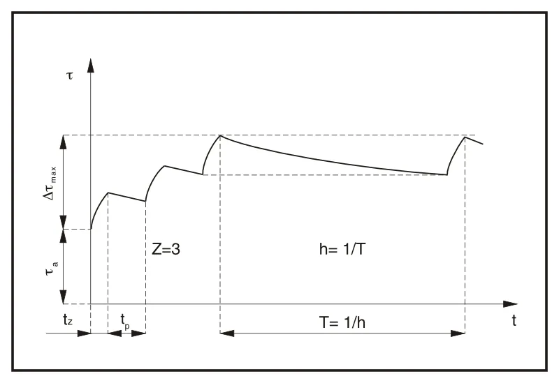 - h – predstavlja broj koliko puta na sat može da se izvrši zaletanja u jednakim vremenskim razmacima, a da se granična nadtemperatura ne pređe