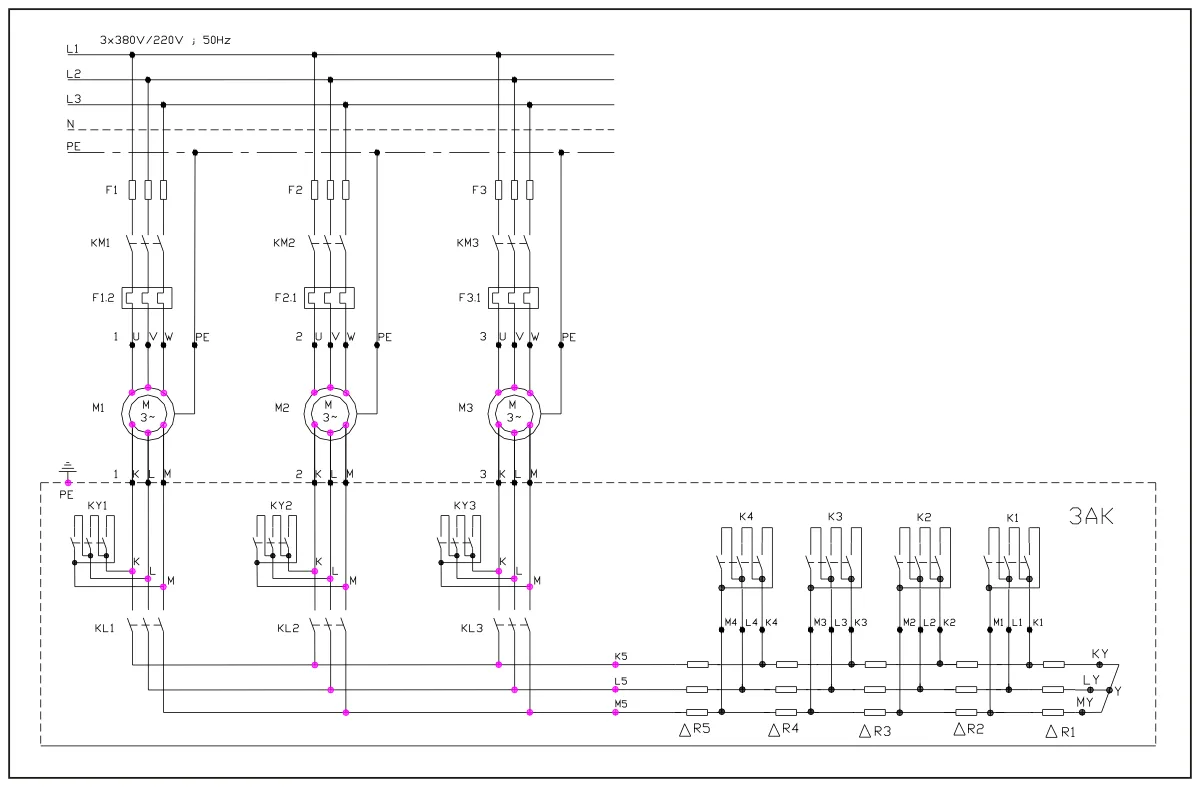 Primer 1. Sukcesivno zaletanje tri elektromotora sa jednim pokretačem