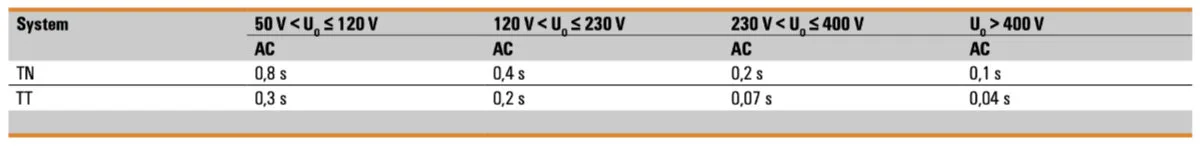 Maksimalno dozvoljena vremena isključenja za krajnja kola (tabela 1) definišu vreme isključenja koje minijaturni prekidač mora biti u stanju da podnese primenjenu struju kratkog spoja (nekoliko milisekundi). Ovo osigurava da prekidači ne budu oštećeni udarom groma.